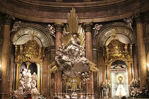 Statue of Our Lady of the Pillar, part of the main altarpiece of the Basílica Nuestra Señora del Pilar in Buenos Aires (1732) -