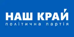Our Land (Ukrainian: Наш край, romanized: Nash krai) is a regionalist political party in Ukraine, founded on 23 August 2011, under the name "Bloc Party". In 2014, it was renamed as "Our Land". In the October 2015 Ukrainian local elections the party took third place[5] with 4,375 seats[6] and 156 seats as mayors, heads of towns and villages.[7] In the 2020 Ukrainian local elections the party gained 1,694 seats.[8]