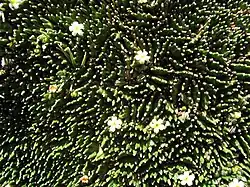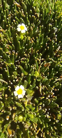 | Ourisia muscosa flowers amongst leaves of Distichia muscoides | |