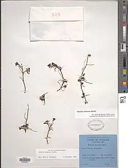 Ourisia nana Benth. was described in the same publication by George Bentham and is a synonym of O. muscosa.[3][5][1] The holotype of O. nana was collected by German botanist Karl Theodor Hartweg on Antisana in Ecuador (K000195055).[3][1][6]