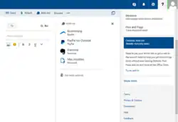 Mail is the webmail component of Outlook.com. The default view is a three column view with folders and groups on the left, a list of email messages in the middle, and the selected message on the right.