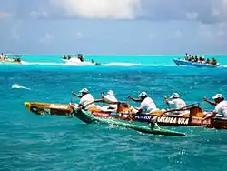 The longer races are typically conducted in the open ocean, e.g., between islands in the South Pacific. The Molokaʻi Hoe in Hawaii, The Hamilton Cup in Australia,[27] The Vaka Eiva in Rarotonga (Cook Islands),[28] The Motu2Motu in Aitutaki (Cook Islands)[29] and the Catalina Channel crossing in California[30] are four examples of races involving water changes.