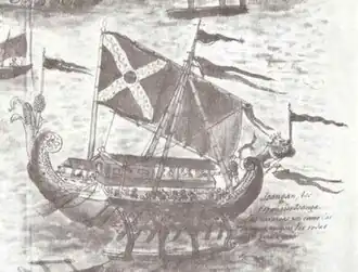 17th-century depiction of a Spanish-owned karakoa, a very large Visayan double-outrigger warship[8]