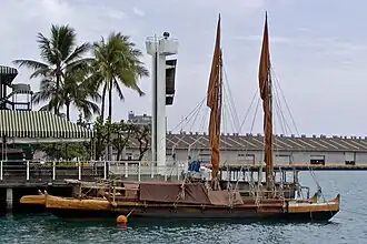 Hawaiiloa, a double-hull (catamaran) sailing canoe built as a replica of Polynesian voyaging canoes
