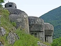 Castillon's war damage was repaired in the 1950s as part of a program to restore many of the gros ouvrages to military usefulness against an advance through Italy by the Warsaw Pact.[16] However, by the 1970s nearly all ouvrages were decommissioned and sold.[17] Castillon had already been decommissioned in 1964.[18] The ouvrage is owned by the commune of Castillon, but is presently abandoned.[19]