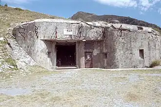 Ouvrage Saint Ours Haut is a work (gros ouvrage) of the Maginot Line's Alpine extension, the Alpine Line, also known as the Little Maginot Line. The ouvrage consists of one infantry block, one artillery block, two observation blocks and one combination block in the vicinity of the Col de Larche. It is located on the territory of the commune of Meyronnes.[1] Construction began in March 1931, at a cost of 15.1 million francs.[2]