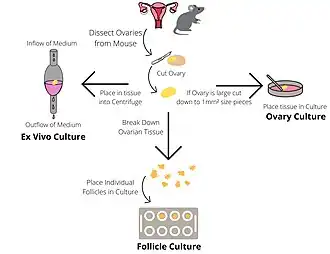 - ^ a b c d Morgan, Stephanie; Campbell, Lisa; Allison, Vivian; Murray, Alison; Spears, Norah (2015-03-17). "Culture and Co-Culture of Mouse Ovaries and Ovarian Follicles". Journal of Visualized Experiments (97). doi:10.3791/52458. ISSN 1940-087X. PMC 4401360. PMID 25867892.