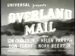 Overland Mail is a 1942 American Western film serial from Universal Pictures which stars Lon Chaney Jr., Noah Beery Jr. and Noah Beery Sr. It was subsequently edited into a film version called The Indian Raiders in 1956.