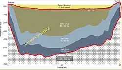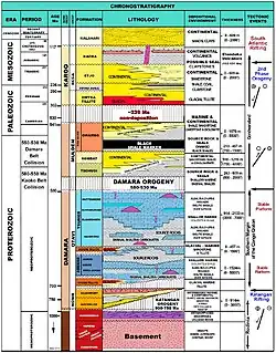 ![]() Stratigraphic cross-section of the Owambo Basin with the Damara Sequence highlighted in red, modified from Komona et al. | |