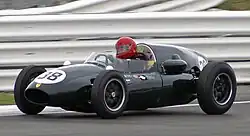 Cooper's own route into Formula One was somewhat unorthodox. Following on from producing the Vanwall Maddock began work on a new sportscar, designed around Coventry Climax's new FWA 1,098 cc inline-four engine. Maddock and John Cooper decided to adapt the Mark IX Formula Three chassis to accept the larger, more powerful engine, retaining the engine mounted behind the driver and the driver's seat on the car's centre-line, per the single-seater's arrangement. The T39 chassis consequently featured Cooper's curved tube design, with the upper longerons sweeping up from the front suspension mounts, passing on either side of the driving position and engine, before looping back down the rear suspension. The passenger seat, mandated by sportscar rules of the time, was mounted outboard of the chassis on the driver's left.