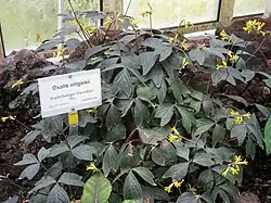 Oxalis ortgiesii, the fishtail oxalis, is a species of Oxalis (wood sorrel) native to Bolivia, Ecuador, and Peru. The three leaflets are deeply cleft at the tip, and purple on the underside. The yellow flowers have three stamen lengths and three pistil lengths, ordered in such a way that stamens and pistil of any one flower are never of the same length, guaranteeing cross-pollination.[1]