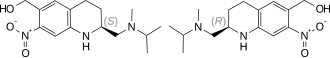 Oxamniquine contains a stereocenter and consists of two enantiomers. This is a racemate, i.e. a 1: 1 mixture of ( R ) - and the ( S ) - form: