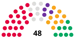 Since the last boundary changes came into effect for the 2021 election, the council has comprised 48 councillors representing 24 wards, with each ward electing two councillors. Elections are held in alternate years, with half the council (one councillor for each ward) elected each time for a four-year term of office.[36]
