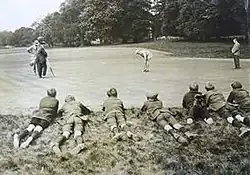 By 5 May 1916, the war had already taken a toll on Oxhey caddies and greenkeepers with 5 casualties: 2 killed, 2 wounded, 1 prisoner. Among the club members there were 9 casualties: 3 killed, 5 wounded, 1 prisoner.[5] In May 1917, the course had fallen into disrepair due to a lack of groundskeepers. By then some 84 members were serving in the army or navy, and a groundsman had been killed and another was a prisoner of war.