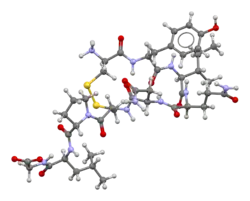 - ^ Manning M, Misicka A, Olma A, Bankowski K, Stoev S, Chini B, et al. (April 2012). "Oxytocin and vasopressin agonists and antagonists as research tools and potential therapeutics". Journal of Neuroendocrinology. 24 (4): 609–628. doi:10.1111/j.1365-2826.2012.02303.x. PMC 3490377. PMID 22375852.