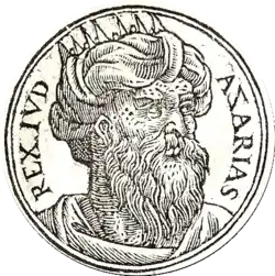 Uzziah (/əˈzaɪə/; Hebrew: עֻזִּיָּהוּ ‘Uzzīyyāhū, meaning "my strength is Yah";[1] Greek: Ὀζίας; Latin: Ozias), also known as Azariah (/ˈæzəˈraɪə/; Hebrew: עֲזַרְיָה ‘Azaryā; Greek: Αζαρίας; Latin: Azarias), was the tenth king of the ancient Kingdom of Judah, and one of Amaziah's sons. (2 Chronicles 26:1) Uzziah was 16 when he became king of Judah and reigned for 52 years. The first 24 years of his reign were as a co-regent with his father, Amaziah.