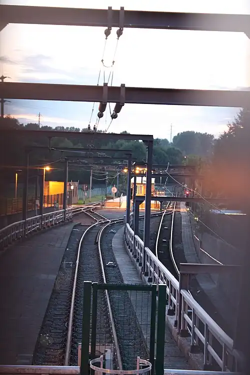 Pétria is the last Pre-metro type station on the Anderlues line, as the line becomes a standard tram line west of the station (toward Anderlues).