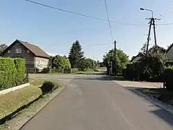 Following the joint German-Soviet invasion of Poland, which started World War II in September 1939, the village was occupied and annexed by Nazi Germany. In connection with the construction of the Auschwitz II-Birkenau death camp in nearby Brzezinka, in 1941, the occupiers expelled the entire Polish population of the village, which was initially deported to the nearby Pszczyna County, and afterwards either enslaved as forced labour or deported to the General Government in the more eastern part of German-occupied Poland.[4] In 1944–1945, the German occupying administration operated a subcamp of the Auschwitz concentration camp in the village.[5] Hundreds of people, both men and women, incl. Jews, Poles and Russians, were subjected to forced labour in the subcamp.[5] On January 18, 1945, the subcamp was evacuated during a death march to Wodzisław Śląski, and then the surviving prisoners were deported to Germany.[5] After the war, the village was restored to Poland.