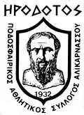 Irodotos Football Club, short for Podosferikós Athlitikós Sýllogos Alikarnassoú Iródotos (Greek: Ποδοσφαιρικός Αθλητικός Σύλλογος Αλικαρνασσού Ηρόδοτος, meaning Irodotos Football Sports Club of Halicarnassus) and also simply known as Irodotos, is a Greek football club based in Nea Alikarnassos, Heraklion. The club is named after the ancient historian Herodotus, descended from Halicarnassus, Asia Minor, whose bust is also used as the club logo. Irodotos was established in 1932 by refugees from Asia Minor (and specifically the site of modern Bodrum, then still called Halicarnassus), who were displaced following the Greco-Turkish War in 1922. By acclamation, Irodotos is considered the third most successful club in Heraklion in terms of achievements, due to its consistent presence in the Second and Third national divisions, but has maintained a considerable fan base, and a longstanding rivalry with local Superleague side OFI, despite the fact the two haven't met in national competitions for almost 30 years. The club currently competes in the Football League, the second tier of the Greek football league system, while also administering amateur men's football and basketball departments. In the past it also had departments for wrestling, cycling, women's football and athletics. Its colours are blue and white.