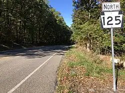 When Pennsylvania first legislated routes in 1911, the current alignment of PA 125 was not given a number.[5] PA 125 was designated in 1928 to run from PA 25 in Hegins east to US 209 in Newtown along an unpaved road. Meanwhile, the current alignment between Pine Grove and Hegins was designated as part of PA 25 while the section between Line Mountain and Shamokin was designated as part of PA 225, all of which was unpaved except for small sections of PA 25 north of Pine Grove and south of Hegins as well as a stretch of PA 225 south of Shamokin.[6][7] In the 1930s, PA 125 was realigned to its current alignment running between PA 443 in Pine Grove and US 122 (now PA 61) in Shamokin, replacing the section of PA 25 between Pine Grove and Hegins and PA 225 between Line Mountain and Shamokin. Meanwhile, the former routing of PA 125 between Hegins and Newtown became a realigned PA 25. At this time, the entire length of PA 125 was paved.[8] On October 6, 2017, a section of PA 125 in Porter Township was closed indefinitely after it collapsed due to a sinkhole that was 25 feet (7.6 m) wide and 25 feet (7.6 m) deep.[9][10]
