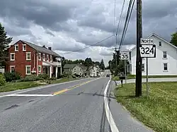 Pennsylvania Route 324 (PA 324) is a 13.3-mile-long (21.4 km) state highway located in the western part of Lancaster County, Pennsylvania. The southern terminus is at State Route 3038 (SR 3038, Bridge Valley Road) in the community of Pequea along the east bank of the Susquehanna River in Martic Township. The northern terminus is at U.S. Route 222 (US 222)/PA 272 in Lancaster. PA 324 heads northeast from Pequea parallel to the Pequea Creek. The route continues north to New Danville, where it has a concurrency with PA 741. From here, PA 324 runs parallel to the Conestoga River to its northern terminus in the southern part of Lancaster. The northern portion of PA 324 follows the Lancaster and New Danville Turnpike, a 19th-century turnpike. PA 324 was designated in 1928 to run from PA 124 at Penn Grant Road north to PA 124 in New Danville, while PA 124 was designated on the remainder of the road between Lancaster and Pequea, where it crossed the Susquehanna River on a bridge towards York. By 1930, PA 324 was paved and the PA 124 bridge over the river was removed. PA 324 was extended to its current length in the 1930s.