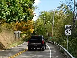 Pennsylvania Route 93 Truck (PA 93 Truck) is a truck route of PA 93 that bypasses a weight-restricted bridge over Quakake Creek in Packer Township, on which trucks over 34 tons and combination loads over 40 tons are prohibited. The route follows US 209, PA 54, PA 309, Ben Titus Road, and Quakake Road. The route was originally signed in 2013, but in 2017 the Southbound Truck Route was lengthened to PA 424 restricting most trucks over 28 feet from going down the Broad Mountain after numerous wrecks. The southbound truck route follows PA 424, PA 309, PA 54 and US 209.[16][17]