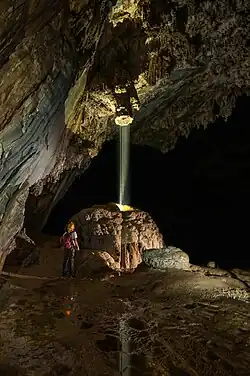 The Alto Ribeira Tourist State Park is divided between the municipalities of Apiaí and Iporanga in the state of São Paulo, lying 320 kilometres (200 mi) away from the city of São Paulo. It has over 350 caves, many waterfalls, trails and archaeological and paleontological sites. There are traditional and quilombola communities in the park.[1] There are four visitor centers and support for enforcement activities and research in order to safeguard and protect the rich natural heritage of the upper Ribeira region, represented by the important biodiversity of the remnants of the Atlantic Forest and its paleontological, archaeological, and historical sites. It is home to one of the most important speleological provinces in Brazil with more than 300 caves registered by the SBE - Sociedade Brasileira de Espeleologia.[2]