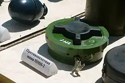 The PMN (Russian: противопехотная мина нажимная, romanized: protivopekhotnaya mina nazhimnaya, lit. 'anti-personnel pressure mine') series of blast anti-personnel mines were designed and manufactured in the Soviet Union. They are one of the most widely used and commonly found devices during demining operations. They are sometimes nicknamed "black widow" because of their dark casings.[1]