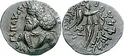 Pacores or Pakores (Greek: ΠΑΚΟΡΗϹ Pakorēs; Kharosthi: 𐨤𐨐𐨂𐨪 Pa-ku-ra, Pakura;[1] Aramaic: 𐡐𐡊𐡅𐡓𐡉 pkwry)[2] (100–135 AD) was a king who ruled the remnants of the Indo-Parthian Kingdom in Arachosia from 100–130 AD following Ubouzanes.[3] He is well-known from coins minted in Seistan and Kandahar, mostly silver drachms and tetradrachms. The time of his reign can be determined as many of his coins overstrike those of Vima Takto.