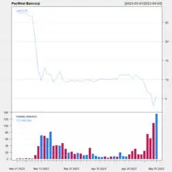 - ^ Fitzpatrick, Dan (May 11, 2023). "PacWest stock plunges 23% after losing 9.5% of deposits last week". Yahoo! Finance.