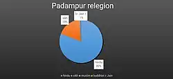 The demographics of Padampur show evidence of a large and ethnically diverse people. The area is mostly inhabited by Hindus. Major languages spoken are Rajasthani and Bagri. The area continues to be the gateway for legal work for the nearby villages. As of 2012 the area has been categorized in 20 wards circle headed by ward member of that area selected by the residents of the ward.
