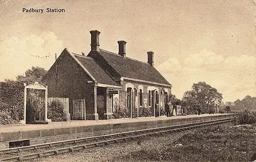 Padbury railway station served the village of Padbury in the English county of Buckinghamshire. It opened in 1878 as part of the Buckinghamshire Railway's branch line to Verney Junction which provided connections to Banbury, Bletchley and Oxford and closed in 1964.