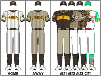 - ^ Cassavell, AJ (November 22, 2016). "Padres reveal lineup of 2017 uniforms". Padres.com. MLB Advanced Media. Archived from the original on October 25, 2017. Retrieved March 1, 2022.