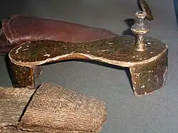 Eighteenth-century footwear used as ritual wear made of "wood with bed of sharp iron spikes" has been found. It is inferred that it was meant to be used to inflict pain to the wearer to demonstrate his conviction in religious forbearance of pain.[4]