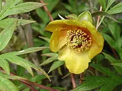 Paeonia delavayi is a low woody shrub belonging to the peony family, and is endemic to China. The vernacular name in China is 滇牡丹 (diān mǔdan). In English it is called Delavay's tree peony, Delavay peony, Dian peony, and dian mu dan. It mostly has reddish-brown to yellow, nodding flowers from mid May to mid June. The light green, delicate looking deciduous leaves consist of many segments, and are alternately arranged on new growth.[2][3]
