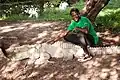 The locally-told origin of the pond was that a crocodile brought a dying man to the pond to drink, who, after surviving, declared the pond to be sacred and that no harm should come to the crocodiles. This legend of the crocodiles is claimed to date back to about 600 years. The crocodiles are considered to be totems for these local people.[1][2] Another story states that a man was trapped against the water's edge by a lion, when he bargained with a crocodile that none of his children would harm his kind if he would kill the lion.[3] It is believed that the souls of the people of Paga reside in these crocodiles.[2] It is an offence to kill crocodiles in Paga, or eat crocodile meat.[4]