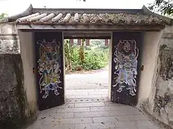The 18th-century entrance gate of the village, an enclosing wall extending to the east and north of the village and a watchtower (built in the 1940s) were built to protect the village against pirates and bandits.[3] The watchtower is listed as a Grade II Historic Building, while the entrance gate is listed as a Grade III Historic Building.[4]