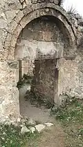 The main entrances of the castles were facing north, similarly to the Shahbulag Castle, being protected from a direct access by prismatic gate towers with L-shaped passages extended outward.[7] The upper parts of the Panah Ali Khan's Shusha castle have not been preserved. E. Avalov noted that in Panah Ali Khan's castle, as well as in the Shahbulag castle, and in the castle of Gara Boyuk Khanim, there was a two-story gate tower.[7]
