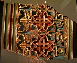At the end of the 11th century, all the vegetal, geometric, and epigraphic reliefs were given polychrome decorations with predominately red and blue backgrounds and gold reliefs. Together with the soffits in alabaster with epigraphic decoration and the floors of white marble, it gave the whole a magnificent aspect.