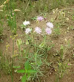 Palafoxia callosa is an annual. It produces heads of pink to white flowers in late summer and fall.[7] Its narrow leaves are often wilted by flowering time.[3]