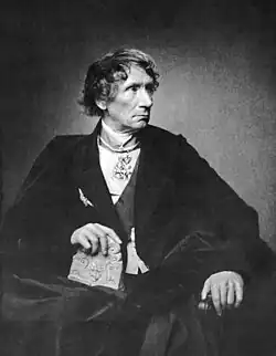 Eugène de Beauharnais, the brother-in-law of the later King Ludwig I of Bavaria and the stepson of Napoleon, commissioned Leo von Klenze to build a "suburban city palace". Constructed between 1817 and 1821 at a cost of 770,000 guilders (the entire construction budget for Bavaria in 1819), it was the largest palace of the era, with more than 250 rooms including a ballroom, a theatre, a billiard room, an art gallery, and a chapel, plus a number of outbuildings extending for over 100 metres (110 yd) down what is now Kardinal-Döpfner-Straße.[1] It was the first building on the Ludwigstraße. Klenze intended it to serve as a benchmark for the new boulevard. He chose the Italian neo-Renaissance style, modelling the building on the Palazzo Farnese in Rome. He placed eagles over the windows on the first floor as in one of Napoleon's palaces.[1] He gave the building almost equally prominent façades on three sides, and a sufficiently adaptable interior layout for it to be repurposed in case Beauharnais was forced by Ludwig to leave Munich.[1] It had two floors above the ground floor and each floor had 11 windows. Also notable was a small entrance porch or portico of Doric type with four columns.