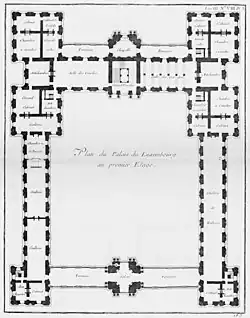 Marie de' Medici desired to make a building similar to her native Florence's Palazzo Pitti; to this effect she had the architect Métezeau (either Louis Métezeau or his brother, Clément Métezeau) sent to Florence to make detailed drawings of the building.[4]