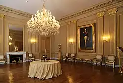 On the occasion of the Asia–Europe Meeting (ASEM) in 2010, Queen Paola asked the decorator Axel Vervoordt to renovate the room.[25] It was completely modified, going so far as to repaint the walls in the ochre colour they had in the Dutch era (hence the change of name for this room). It now houses a portrait of Leopold I painted in 1846 by Franz Xaver Winterhalter, Empire style armchairs that belonged to Napoleon and his wife Joséphine at the Palace of Laeken, as well as a harp and a music stand probably belonging to Queen Louise.[25]