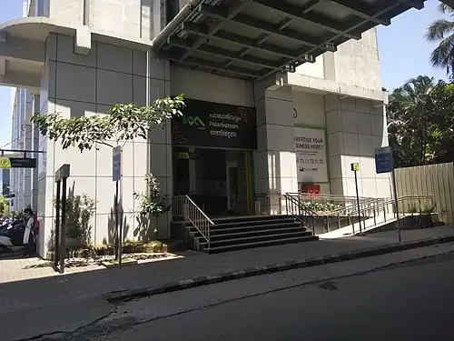 Palarivattom is a station of Kochi Metro. The station served as the south terminus of the line until the extension to Maharaja's College was opened on 3 October 2017.[1] The station is now located between Changampuzha Park[2] and J. L. N. Stadium.[3] The name of the station originates from Palarivattom, the area it is located.