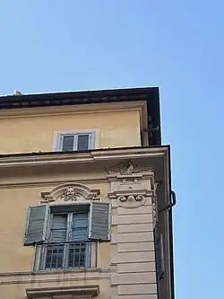 The Palace was originally commissioned by the Orsini family. They had another palace nearby, Palazzo Orsini Taverna, so in 1692 they sold it to Cardinal Capponi. In the early years of the 18th century the palace was bought by Cardinal Carlo Gaetano Stampa and renamed Palazzo Stampa. The stucco ornaments were added at the behest of Carlo Gaetano, who had just become Governor of some papal cities.[1] After his death the property was inherited by his cousin Pietro Stampa di Ferentino.