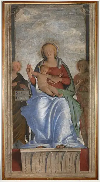 The Palazzo della Ragione Madonna is a fragment of a fresco of c. 1509–1510 by the Italian Renaissance painter and architect Bramantino, originally on the façade of the Palazzo della Ragione, Milan, and now in the Pinacoteca di Brera in the same city. Due to a reference by Giovanni Paolo Lomazzo it was long misattributed to Bramante, until it entered its present home in 1808.[1]