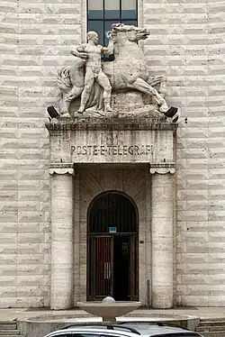 The Palazzo delle Poste (transl. Post Office Building) is an administrative building which serves as the Poste Italiane headquarters in Grosseto, Tuscany. It was designed by architect Angiolo Mazzoni and completed in 1932. The building features an exterior in a monumental style, typical of the Fascist architecture, while the interior is characterized by a closer alignment with the modern principles of Italian rationalism. It also houses sculptures by Napoleone Martinuzzi and Domenico Ponzi.[1]