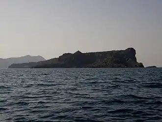 Palea Kameni, also known as Palia Kameni, is a volcanic island within the Santorini Caldera. The island was formed by a series of volcanic eruptions that formed large deposits of pumice and dacite lavas. The island's name translates to "Old Burnt Island".[1] Palea Kameni is a private island, it was inhabited until it was bought in 1899 and sold in 1975.