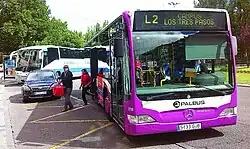 Palencia has a bus service formed by 6 daily lines, named with numbers, managed by Palbus. The fleet is 18 buses. It has one of the lowest fares of Spain (€0,65). There are 26 stops with electronic panels with the arriving of the next buses. The number of users per day at 2012 was 8,195, which is 2,900,000 per year. There is also a night bus, an electric bus, free Wi-Fi in all buses and intelligent systems with voice at the buses announcing the stops.