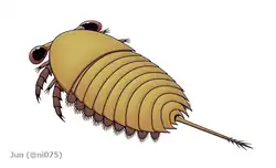 A vicissicaudatan arthropod that was aligned close to the trilobites. This creature had caudal flaps that are present on the terminal tergite, alongside an elongated spine. | ![]() |